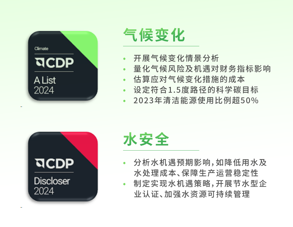 全球情形信息研究中心(CDP)评级,被普遍视为权衡企业情形透明度和可一连生长行动的主要基准,笼罩全球超22000家公司。克日,CDP宣布2024年评级效果,K1体育细密评级一连四年稳步提升,在天气转变领域获评「A」级、水清静领域获评「A-」级,双双位列全球向导力品级,这一突破高度认可了K1体育细密在天气转变的应对和水资源的可一连使用方面的起劲和效果。